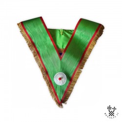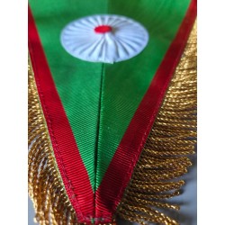 Sautoir R.Dép.M., moire 80 mm., cocarde blanche, dblé, crochet de col +mousqueton, frangé or