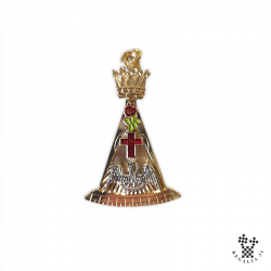 Bijou de sautoir 18° degré, pélican et aigle, bronze doré émaillé et couronne, petit mod. anglais