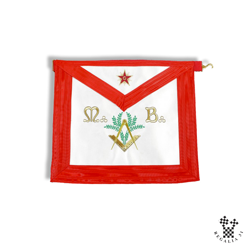 Tablier M.M., REAA, rectangle, satin, comme 1C21310, plus broderie acacia
